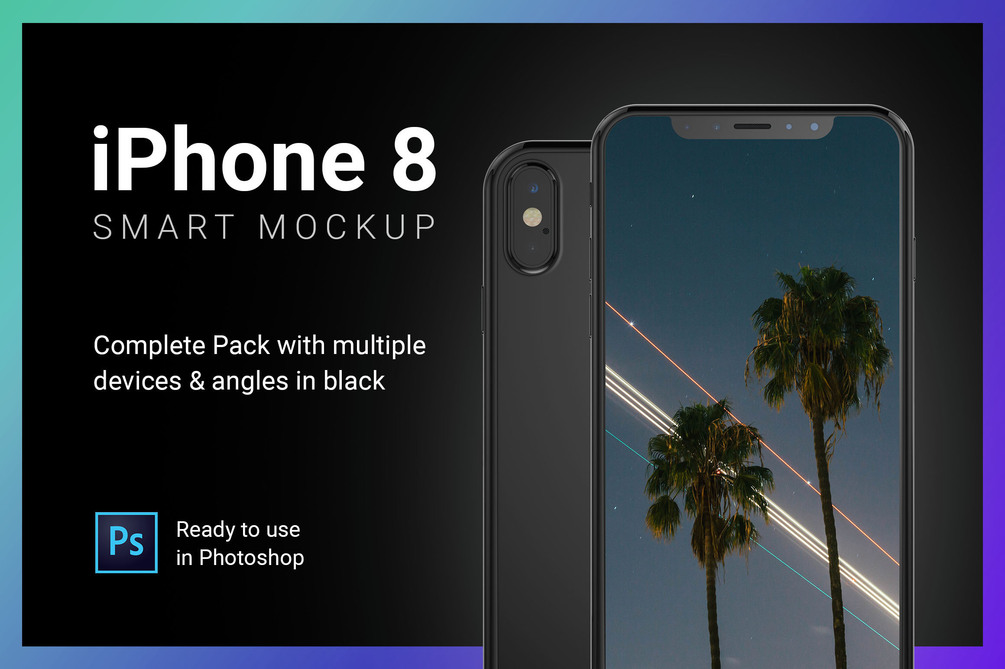 This is a Smart Mockups package with iPhone 8 Mockups - Full Package Ready for Photoshop You can easily change the screen image in any device and any angle included with a single click. (Read how to use below, it's super easy!)